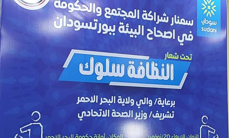 دشنّت رابطة الصحفيين السودانيين ببورتسودان إنطلاقة سمنار شراكة المجتمع والحكومة، في اصحاح البيئة ببورتسودان تحت رعاية والي ولاية البحر الأحمر الفريق الركن مصطفي محمد نور، وبتشريف وزير الصحة الاتحادي د. هيثم محمد ابراهيم بالتعاون والتنسيق مع عدد من الجهات بقاعة أمانة حكومة ولاية البحر الأحمر (قاعة مجلس الوزراء) ، وذلك تحت شعار (النظافة سلوك).