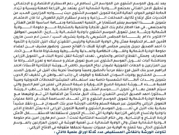 #تمويل_الموسم_الزراعي_الشتوي_الولاية_الشمالية
