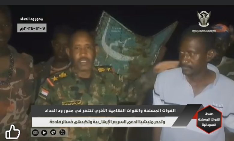 The Sudanese Armed Forces and other law enforcement forces triumphed in the Wad Al-Haddad battle axis, liberated several areas, and defeated the terrorist Rapid Support Militia (Janjaweed) inflicting heavy losses hindering the violations of the Janjaweed militia in the areas of Gezira State, where they killed, raped and looted unarmed citizens – Gezira State – Wad Al-Haddad Axis – December 7, 2024.