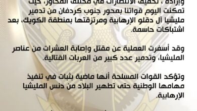 بسم الله الرحمن الرحيم القيادة العامة للقوات المسلحة بيان الأربعاء ١٤ يناير ٢٠٢٦م تواصل قواتكم المسلحة…